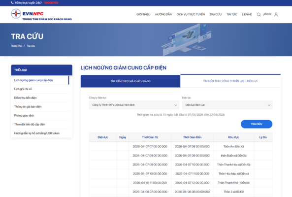 | 2026-04-12 05:00:00.000 | 2026-04-12 06:00:00.000 | 1 phần xã Lý Nhân | |||