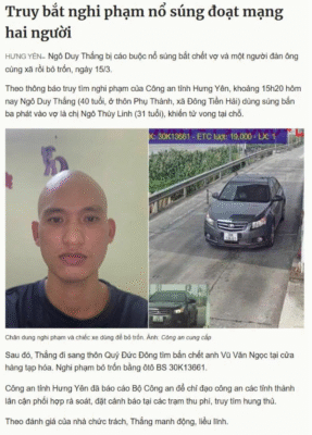 Nguồn: https://vnexpress.net/truy-bat-nghi-pham-no-sung-doat-mang-hai-nguoi-5050702.html?utm_source=facebook&utm_medium=fanpage_VnE&utm_term=mix&utm_campaign=phuonguyen&fbclid=IwY2xjawQjirhleHRuA2FlbQIxMABicmlkETF6WjU1cFBkN2xZQXJqNTZmc3J0YwZhcHBfaWQQMjIyMDM5MTc4ODIwMDg5MgABHqDoktof88owUfZoQj3HFWTrrIGAaSZiR5FDQR8ZzeRZZVa6ekOftwEiIJxd_aem_7zKWQdnlMjt2vy0l57BEuQ